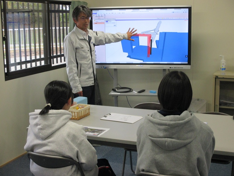 初日は会社内ガイダンスや簡単な社会人マナーの実践、その後の工事現場見学では浦幌町・厚内川砂防(帯広建管発注)でのドローン操縦体験、帯広市・川西第1樋門改良(帯広開建発注)での測量体験、2日目には清水町・佐幌橋補修(帯広建管発注)での高所作業車乗車体験、士幌町・畑地帯士幌川西東北地区(十勝総振局発注)での重機試乗、青柳通整備(帯広市発注)での道路工事多角的見学などの時間を過ごしてもらいました。